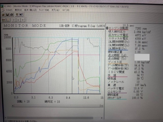 ブースト1.0k、7250回転でインジェクター開弁率は97%でした。