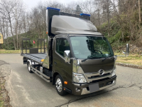 8年間使用した搬送車でしたが、キャンターからデュトロに乗り換えました! アオリなしで製作しましたのでワイドボディも楽々で載ります。 エアデフレクターを取り付けて、鳥居、サイドバンパー、リヤフェンダーは