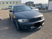 BMW 135i E82 マットブラック オールペン 完成! 2023年7月29日 板金塗装:BMW K様BMW 135iをマットブラックにオールペンさせて頂きました! この車両はゼロヨンイベントに参加する時は、リヤにドラッグ用タイヤを履かせますので、リヤフェンダーをたたき出してリヤバンパーにはFRP