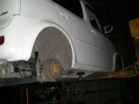 ダイナパックに設置するためにタイヤを外すと・・・ オーマイガー!! すぐにGOODRIDE SPORT RSに交換しました。 フロントナンバーステーもお客様のご希望通りの物を製作しました。