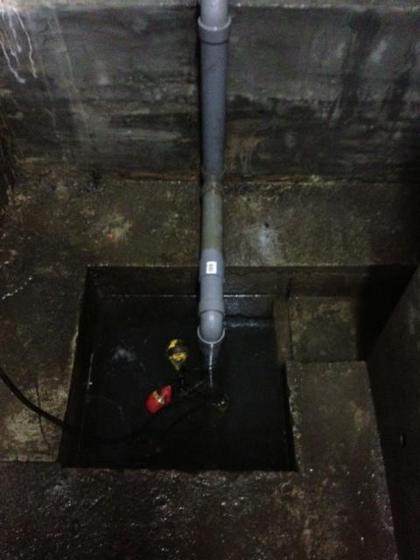 マンションの地下室の ポンプ配管修理しました!朝5時半に やな予感して マンションを見に行くと 雨水ポンプの配管が 割れて 浸水していました!