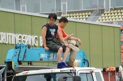 私はいつものように クレーンの上で高見の見物です!去年はゼッケン番号読み上げ手伝ってましたが 今年は応援です!