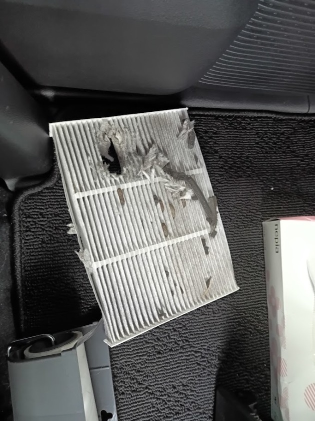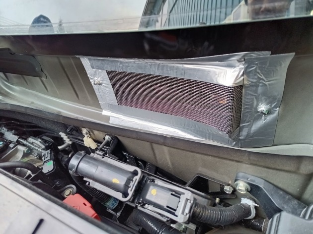 ホンダ Nワゴン 車内にネズミが! 2025年12月26日 お客様のトラブルで、、車内になんかいる。。と相談が、、調べていくと。。。エアコンフィルターにネズミらしき糞がこのままだと配線噛まれて謎エラー続発します。てことで侵入経路を探っていきますエアコンフィルターが通路ってことはワイパーカウルを外し外気取り入れ口は無防備すぎる。。。で侵入経路発見!!この水抜き穴が他メーカーと比べたら少々大き目ネズミなら通ります。最初は水抜き穴を塞ごうかと思いましたが落ち葉やゴミが詰まってもやなので外気取り入れ口に金網張りました。これで大丈夫かと!!まだ車内にいるかもしれませんが、、餌を置いて様子を見てください。。と告げ、、納車しました。