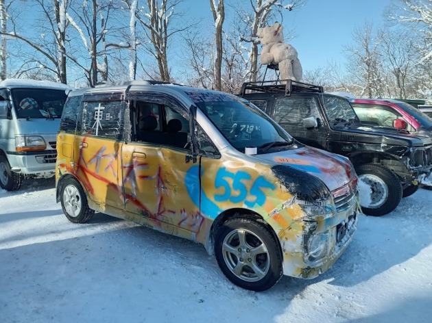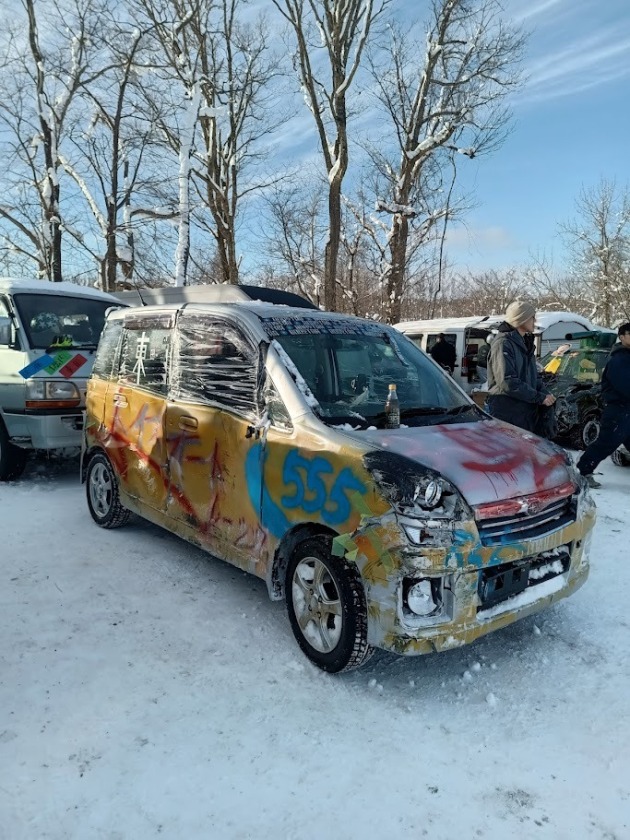 ガレージミヤジマ 雪上軽耐久レース 2026 in 雨竜サーキット 2026年1月27日 去年から出場しているガレージミヤジマ 雪上軽耐久レース こんなアホなレースやってるの日本でここしかないんじゃないか?まさに人間と車の耐久レースです。魔改造してくる車見てるだけでも楽しい今年は最多の25チーム!!普段は絶対ぶつかっちゃだめですよ!!今回レンタカーであたった車はなんと!!ラリーと言えばスバル!!ステラです(笑)侮るなかれ四輪独立サスペンションですチーム トイズオートレーシング 爆上です早速若きホープによる塗装だいたいこーなる。。センスない。。エアバックのヒューズ抜いて準備完了。我々の目標はラジエターを守ることそして死なない。。予選で。。。ガラス無い(笑)。。ドアとハンドルに手が挟まる謎現象。。そして13位。。。。車も人もまだ走れるので決勝進出結果は。。。なんと5位!!今年も楽しませてもらいました。スタッフの皆様、関係者の方、ありがとうございました。来年も開催できることを心から祈ってます。
