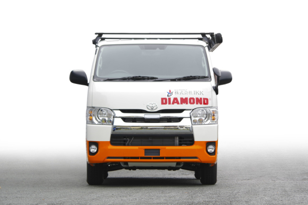 そのため、車の外装には大きく工具のブランド名DIAMONDと入れ、インパクトと印象の強い外装ボディラッピングを行いました。