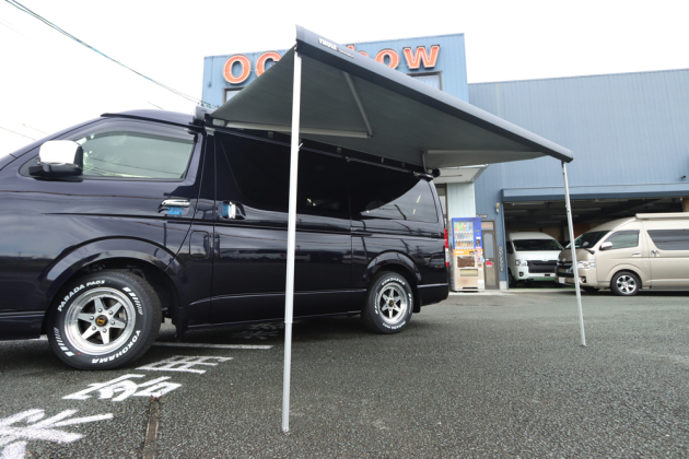 ボディにはアウトドアに役立つサイドオーニングを取付けました。簡単に簡易的なテントを設置することができ、テントを持ち運ぶ必要がないため荷物が減り気軽にお出かけを楽しめます。