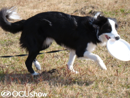 人が投げるディスクを、犬が走って追いかけ、空中でキャッチすることによるり得点を