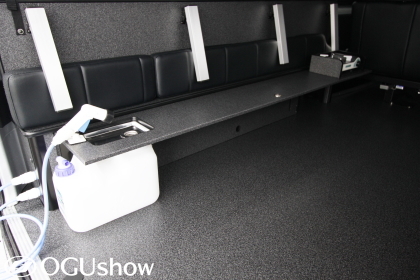 左側BOX側面に折りたたみ式のギャレー設備を完備。