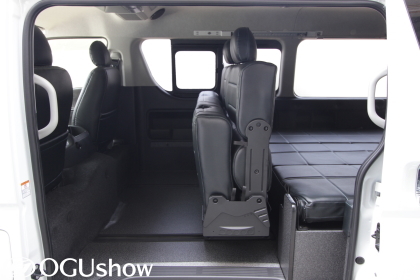200系ハイエースセカンドシート交換:STiシート1400mm幅(成型タイプ)床張り加工を施工する際にレール埋め込み加工をして取付するSTiシート。