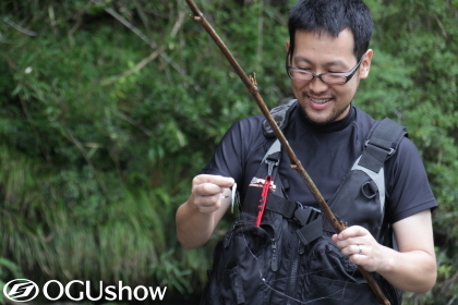 あたご川の漁協の方にご協力をいただき鮎釣りのデモンストレーションや
