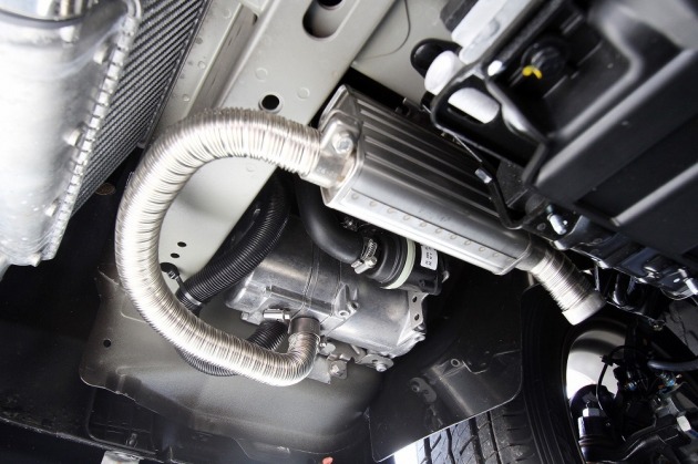 車中泊には欠かせないアイテムの一つ、ウォーターヒーター(ハイドロニック)を装着。