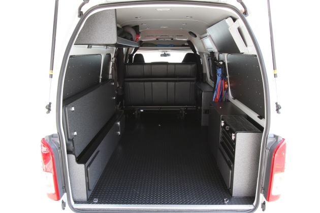 バイクを積載して、1人が仮眠できるスペースが確保でき、