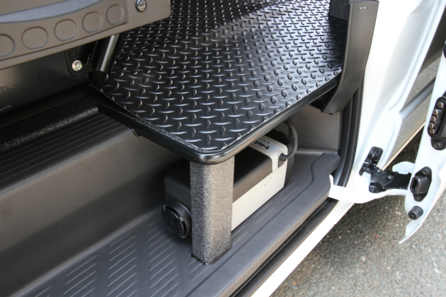 サブバッテリーやインバーターなどはサイドBOX内に収納しています。