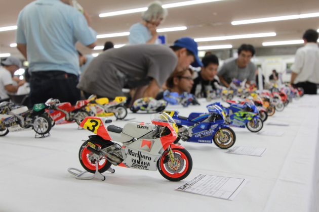 別会場では、バイクプラモデルの展示やバイクのプラモデルを組み立てる体験会が開かれており、多くの家族連れでにぎわっていました。