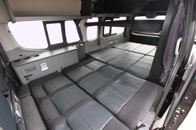 ベッドに選択していただいたのは、FL2段ベッドです。ベッドに足が無いため、ご家族の荷物や大きな荷物を運搬する時に積載が行いやすくなっています。もちろん、2段目がベッドを展開しても邪魔な足はありません!