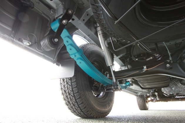リフトアップには、NEEDSBOX製のボディリフトKIT一式、FOXショックアブソーバ、リフトアップリーフを採用し、3インチのリフトアップをしています。純正と異なりワイルドな仕上がりになっています。