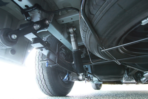 足回りには、玄武製のハイトダウンブロックを使用し、2インチのローダウンをしています。ローダウンしたことでバイクの積載が、よりスムーズに行っていただけます。