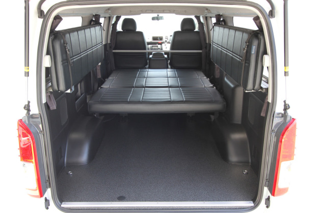 ベースに使用したコンプリートカーはセカンドシートにベッドに展開ができるシート(OG-FWS)を装備し、オプションで2段ベッドも取り付ける事が出来る「OSカーゴ」です。