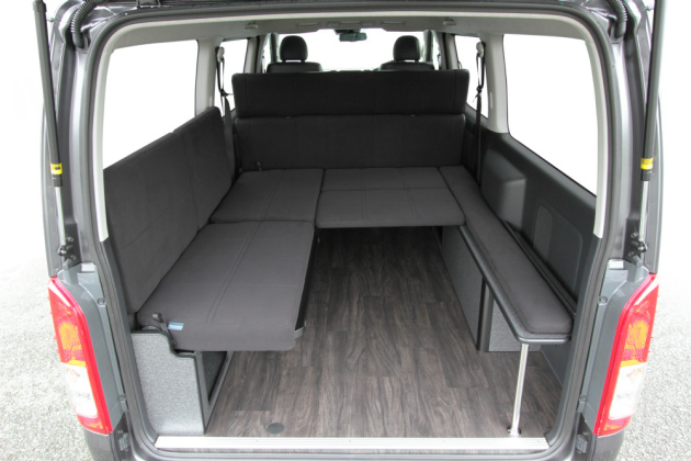 ベンチとしても使用できるFLベッドをハイエース200系に取付け