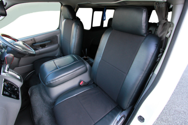 フロントシートにはESシートカバーを装備しています。セカンドシートには純正シートからFWシート背座分割タイプに交換しています。なお、シートのデザインは同じにして統一感を出しています。