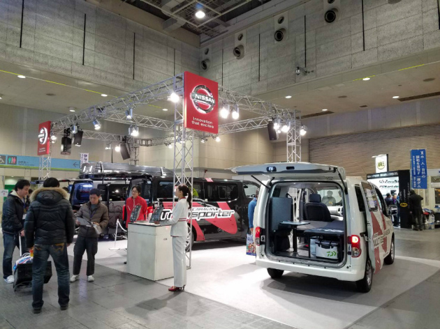 ブースでは、全国の日産ディーラー様でご購入していただけるNV200バネットマルチベッドワゴン、NV350キャラバントランスポーターを釣り仕様にして展示されています。