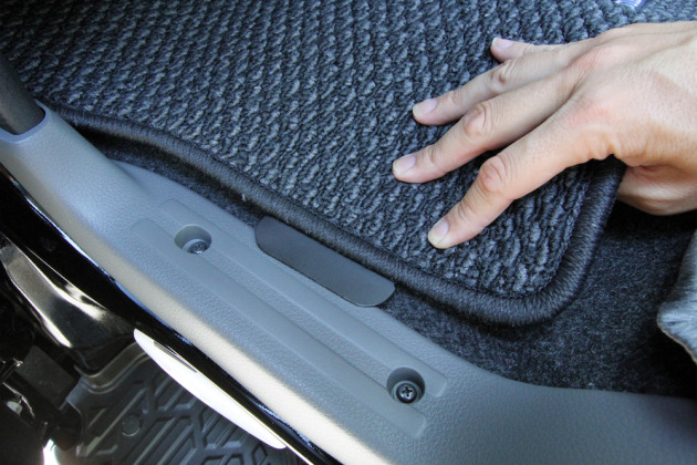 長くフロアマットを使用する事を考え、最も足の上下運動が多い運転席の下に敷くマットには、マットを厚くする施工が施されています。