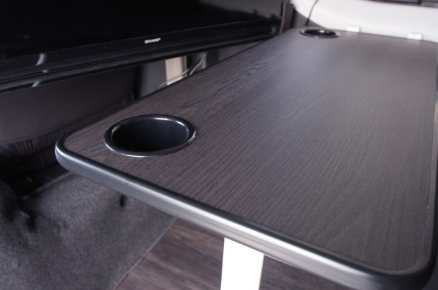 車内にテーブルが無いと不便な事が起きますが、テーブルがある事で邪魔になってしまう場合もあります。そのため、このように脱着が行える上にコンパクトになるテーブルを選択しています。