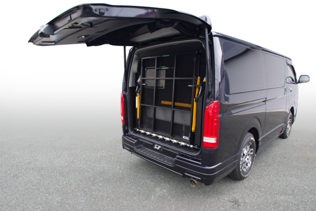 DUCATパニガーレV4の載せ降ろしが行いやすいように、モーターサイクル積載用リフトをハイエースに取り付けました。※リフト積載長:約1700mm