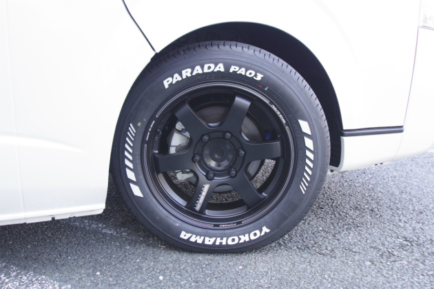 足回りはレーシーな、ボルクレーシングTE37SBマットブラック、タイヤにはYOKOHAMAタイヤのパラダをチョイス。