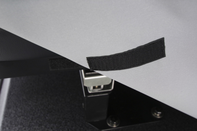 シートバックカバー が、風でめくれないようにマジックテープが付けられておりドアを開けている状態で載せても安心です。
