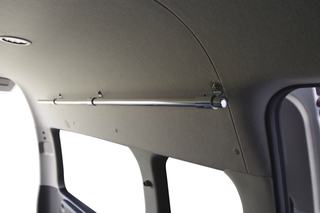 さらに、天井空間にはパイプラックを装備しており、衣類やタオルなどを掛けておく事ができます。車内に掛けて置ける事で車中泊する際にベッドスペースがかさばる事無く広々と車内を使っていただけます。
