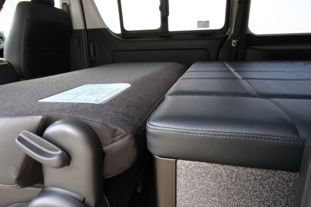 セカンドシートの後ろから広がるベッドスペースは、荷質全面を就寝スペースとして利用できるようにしてくれます。
