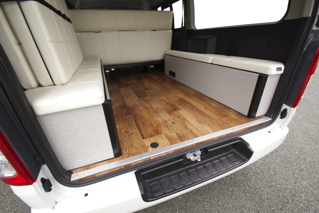フラットに作られたのは、200系ハイエースの床:床貼り加工