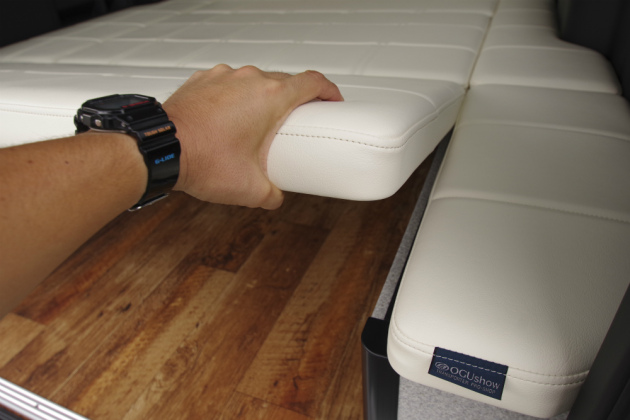 全長約1800mm×全幅約1700mmと、キングサイズ並みのベッドサイズを確保しつつセカンドシートのFWシートと繋げることで2000mm以上のベッドスペースになります。