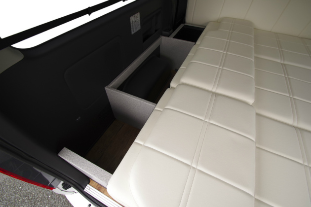 大人がゆったり車中泊できるベッドをハイエースに装備