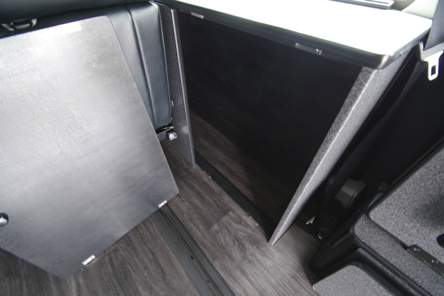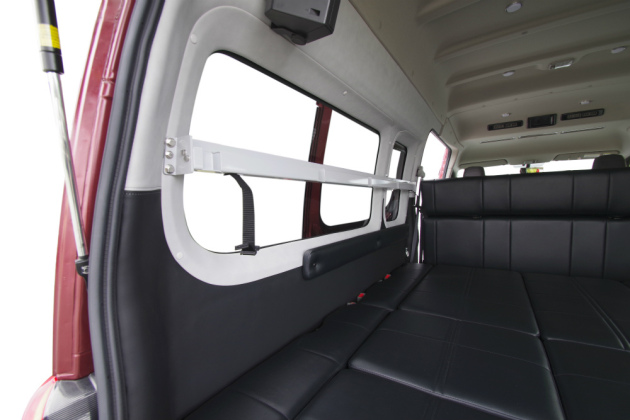 セカンドシートの足元から荷室までの全面に床を貼っており、荷物の載せ降ろしやバイクの固定までが純正に比べ行いやすくなっています。