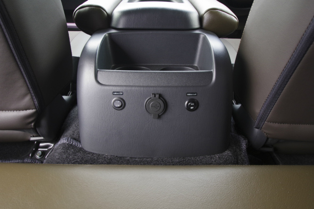 フロントシート周りには、運転席と助手席の真ん中にあるコンソールボックスに差し込むだけで取付ける事ができるアームレスト。