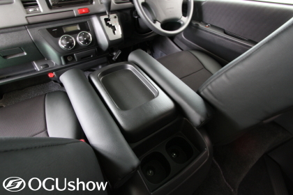 200系ハイエースフロントコンソール付き車:ESアームレストL運転席と助手席の間にあるコンソールBOX部分に差込、お使いいただけるアームレストです。