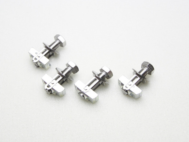 取付けは、ボディなどに穴を開けてこのESターンナットを埋め込み、細いピンなどを差し込んでナットをターンさせボディを挟み込みます。これにより、ナットが固定されます。