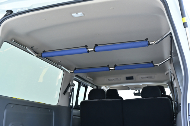 日産NV350キャラバンオグショーESモビリティコンセプト “Surfing” で天井に取付けているのは、ESボードアタッチメントです。