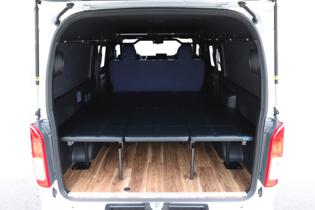 事前にご予約いただくことで、2日間で車中泊することができるトランスポーターが完成します!