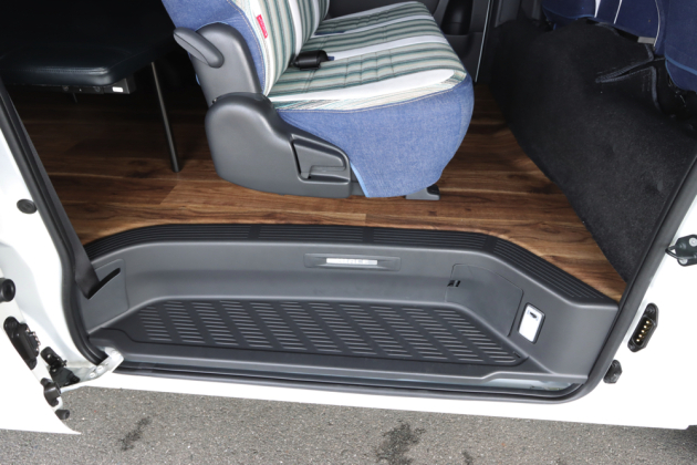 大きな段差が無くなり、お手入れが行いやすいフロア材を貼ったSH床貼り加工。