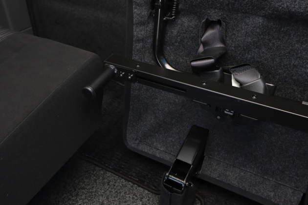 このESタイヤストッパーは、シートに取付けたままそのまま乗車できる構造になっています。