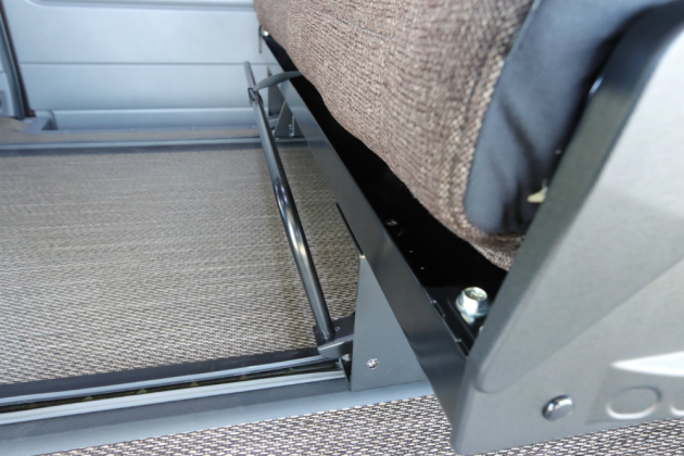 なお、床にはシーレールを埋め込んでおり、シート座面下に取り付けられたレバーを引くだけでロックが外れてレールの分だけ自由に前後スライド可能です。