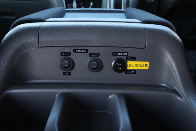 電源の差込口は、ベッドボックスだけではなく、車内で過ごすことの多いセカンドシート前やベッド横のリアヒーター上にも増設しました。