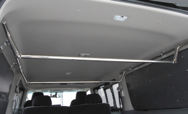 200系ハイエース・NV350キャラバンの広い天井スペースを活用するため、オグショーではESサイドマルチパイプラックを始め、ESボードアタッチメントやESロッドアタッチメントが販売されています。