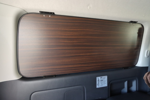今回取付けたのはESウィンドウパネルとESフリップテーブルの2点!どちらともオーナー様のオーダーでオシャレなウッド調で制作しています。