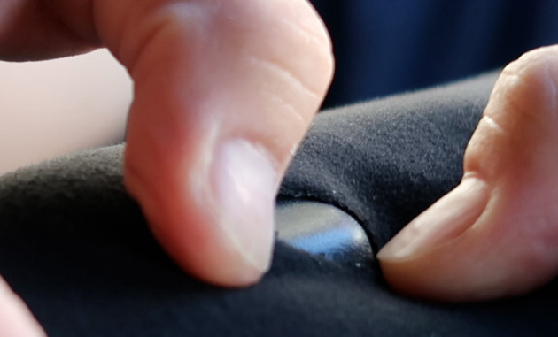 生地はレザーと比べて伸縮性が少ないため取付けが大変です。しかし、実はななめに伸びやすいという特性があります。