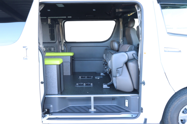 ハイエースのステップ部分まで床を貼上げて荷室面積を広げました!