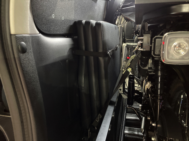 TOUGH SPEC 仕様のフリップベッドは、2分割タイプとなっていて。全面・片側と用途に合わせてアレンジ可能!展示されているように、片側にバイクを積載して全国各地のツーリングスポットへお出かけしていただけます。